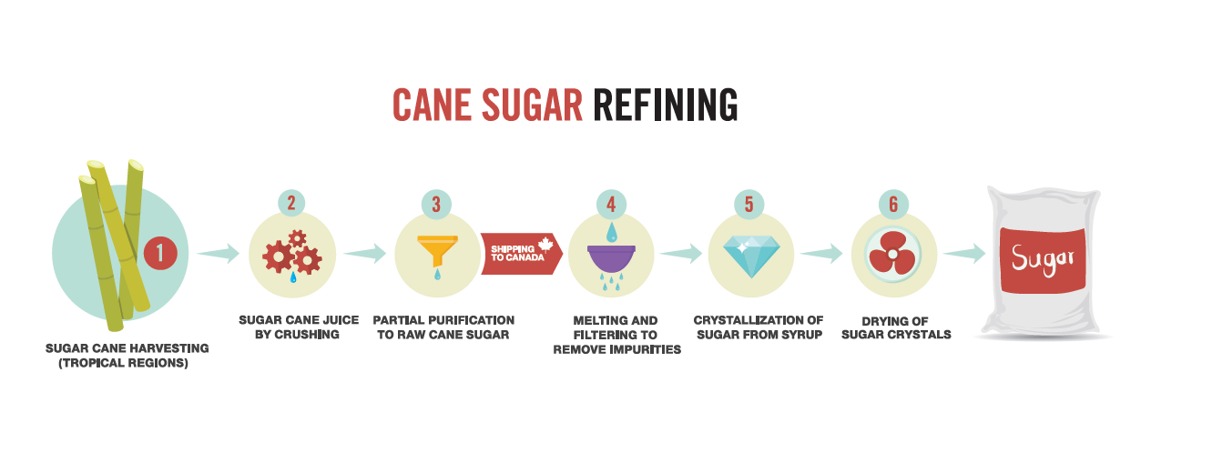 Sugar is typically made from sugar cane or sugar beet plants. The general process is as follows: