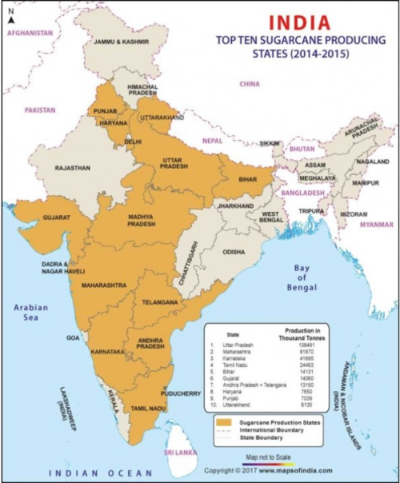 - Planted area : 5 Million Hectares with 415 MMT of sugarcane